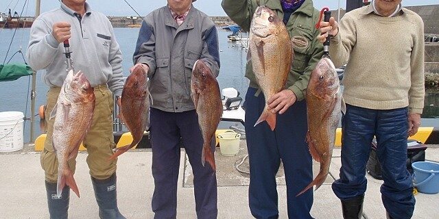 魚種 マダイ 日時 4月18日(水) 投稿者 常連のみなさん 場所 青森県三厩沖 ご投稿ありがとうございます! 素晴らしい釣果です!まだまだみなさん元気いっぱい、現役ですね^^