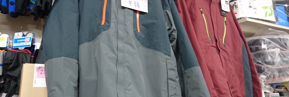 春目前!と、いうことで・・・ 店内の防寒着(DAIWA、シマノ、RBB)が 最終値下げで なんと 半額!!! ゴアテックス素材の防寒着です! 高価なものなので、普段なかなか手がでない金額ですが 半額なら買い!ですね♪ 在 …