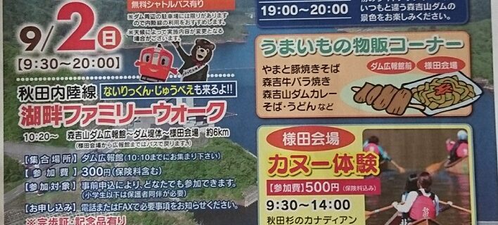 9月2日㈰ 森吉四季美湖まつりが開催されます♪ 楽しいイベントが盛りだくさん‼ 釣り大会もありますよ‼釣った魚はその場で食べられます♪ 週末はぜひ森吉へ(^^♪