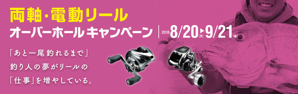 シマノの両軸・電動リールのオーバーホールキャンペーン実施中です! ※交換パーツ、見積のみの場合の手数料は含まれませんのでご了承ください。 + ※オーバーホール1台につき1枚差し上げます。 店頭 …