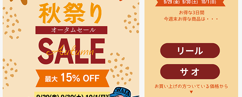 【お知らせ】秋祭りオータムセール開催