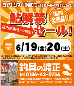 最近、真夏のような暑さを感じます…もうすぐ7月ですね。 7月といえば、そう 鮎釣りのシーズンイン! 渡正釣具店では渓流とサクラマスの解禁を記念し 鮎釣り解禁セールを開催いたします!! 6月19日(金)~6月20日(日)の …