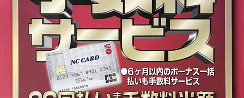10回払いまで手数料サービス&12〜36回払いまで手数料半額セール! 6ヶ月以内のボーナス一括払いも手数料サービス 期間:令和2年7月1日〜7月31日 対象:裏面に『エヌシーおおだて』の記載があるカード この機会にぜひご …
