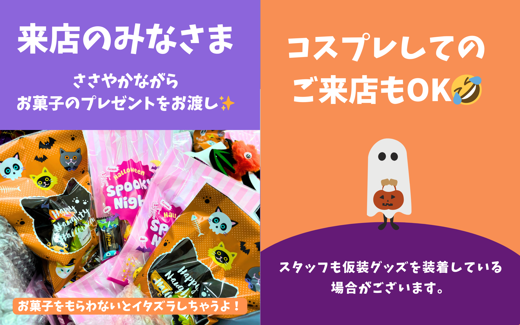 スタッフも仮装グッズを装着している場合がございます。
