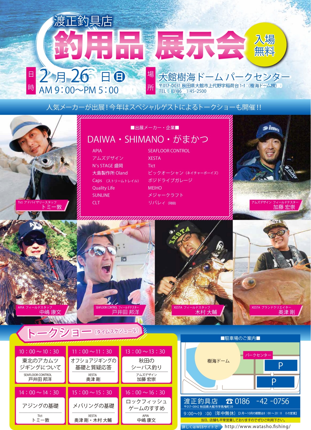 渡正展示会 いよいよ今月末開催!by 渡正in イベント情報on 投稿日: 2017年2月8日 渡正釣具 展示会は 今月末 26日(日)に開催です♪ 昨年までは なかった メーカー様や エキスパートアングラーのトークショーもありますよ♪ どんな小さな質問も ジャンジャンぶつけてみましょう! オフショアジギング 戸井田邦洋さん(シーフロアコントロール) 奥津 剛さん(XESTA) シーバス 加藤 宏崇さん(アムズデザイン) ライトゲーム(アジ) トミー敦さん(Tict) ライトゲーム(メバル) 奥津 剛さん(XESTA) 木村 大輔さん(XESTA) 共有:FacebookX