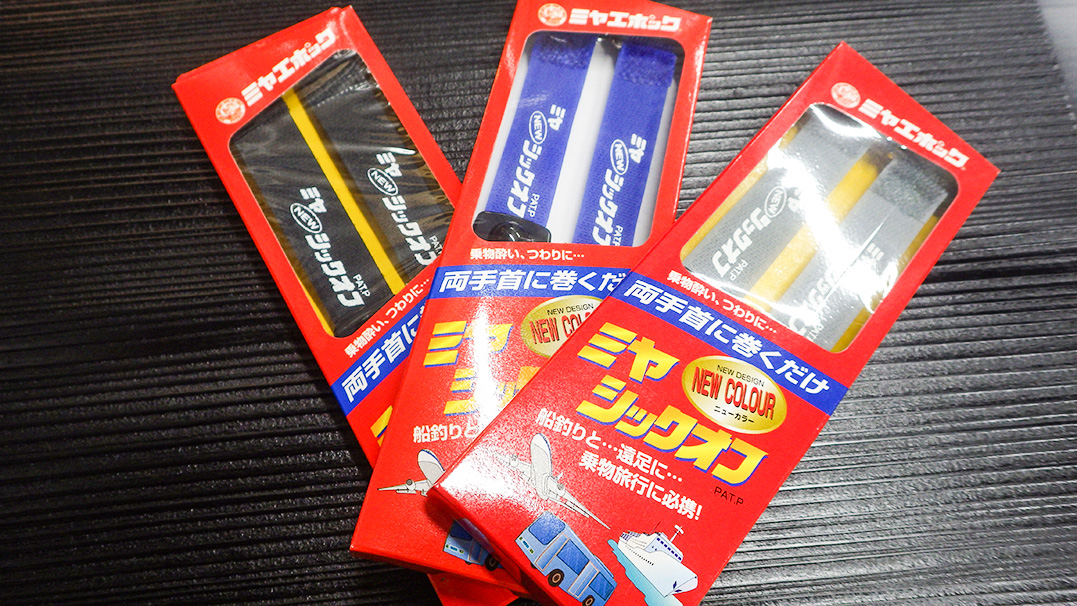 手首に巻いてツボを刺激し、酔いを軽減させるグッズですよ!