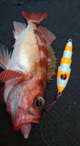 【5月14日】釣果情報【アカムツ/ソイ/沖メバル/タラ等】by 渡正in 船釣り、釣果情報on 投稿日: 2018年5月16日 【5月14日】 魚種 アカムツ/沖メバル/ソイ等 日時 5月14日(月) 投稿者 渡正スタッフ ゆうこさん 場所 青森県風合瀬沖 使用アイテム ロッド:XESTA(ゼスタ)スローエモーションB603、B602 ジグ:XESTA(ゼスタ)フレア250g、スリッピー250g コメント サメ多数。潮早く釣りにくい状況でした。アカムツは朝イチの時合のみ。 共有:FacebookX