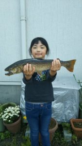 【5月13日】釣果情報【アメマス】by 渡正in トラウトフィッシング、釣果情報on 投稿日: 2018年5月16日2018年5月16日 魚種 アメマス/ウグイ 日時 5月15日(火)午前11時~ 投稿者 読者様 場所 長木川 釣果 アメマス45センチ 1匹/ウグイ2匹 使用アイテム アメマスはルアー、ウグイはエサ(ミミズ)釣り ご投稿ありがとうございます! 父親からルアーフィッシングの指導を受けている最中にヒットしたそうです! 小学2年生だそうです!未来の釣りガール!頑張ってほしいですね^^ 共有:FacebookX