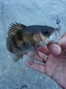 | コメント | 一投一匹状態でした。同じくらいのサイズの豆アジを唐揚げ用に持ち帰りました。 脂も かなりのっていました。メバルは相変わらず小さめが多いですね! |