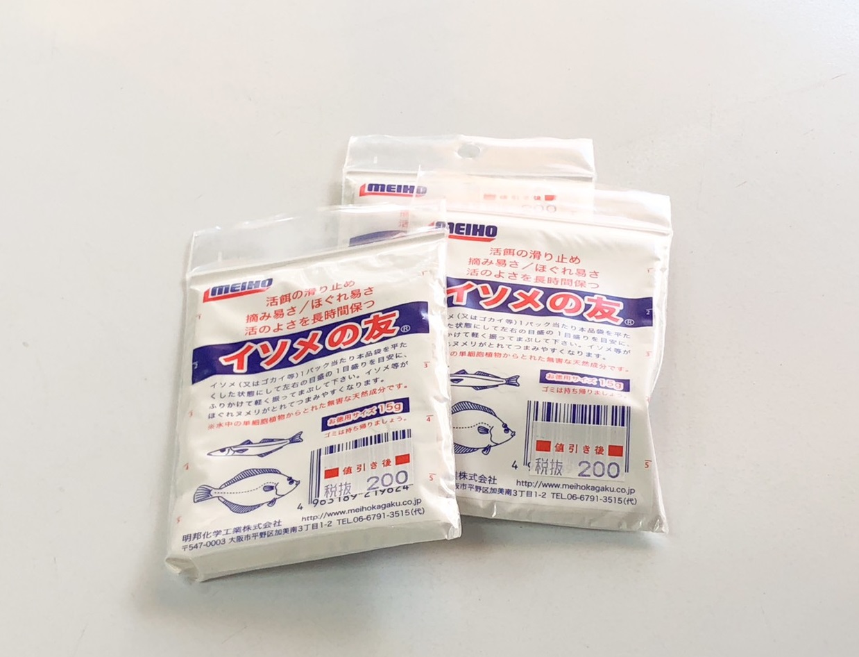 こちらの商品、イソメやゴカイに振りかけて使うとヌメリが取れてつかみやすくなります。