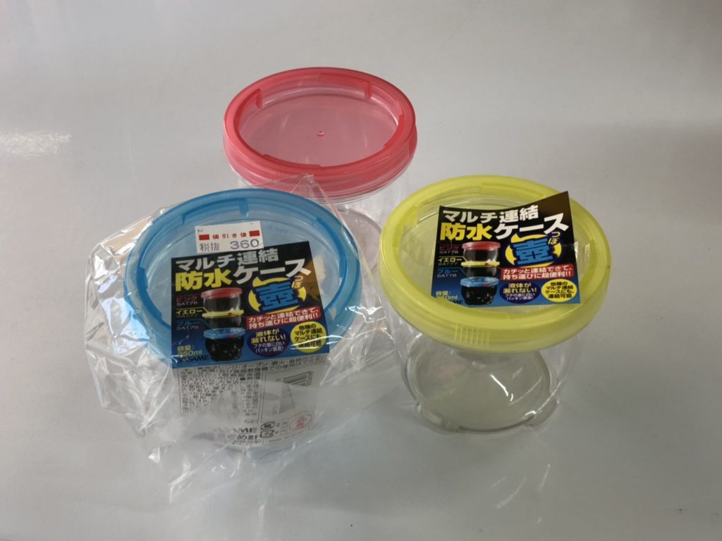 5個程度まで連結できます。真水を入れてハサミやルアーなどを入れてサビ予防に。密封性が高く、用途多数!