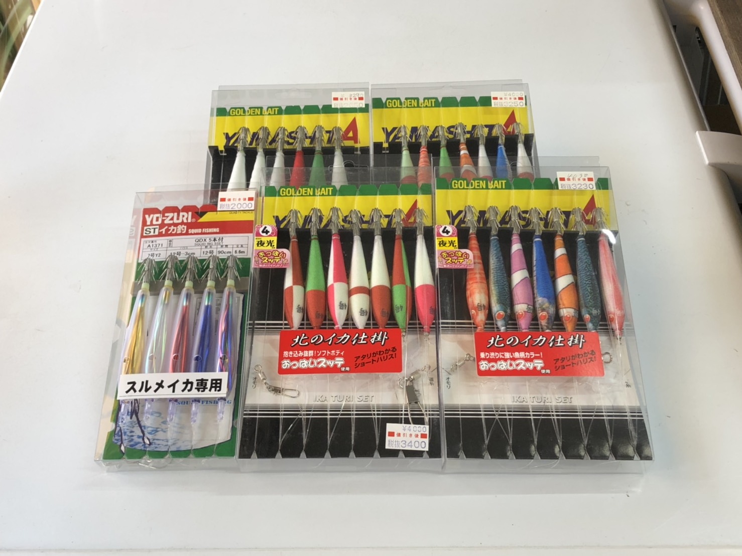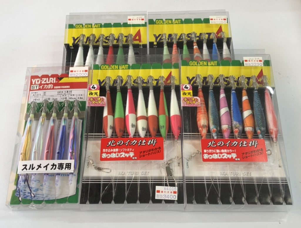 イカ釣り 船用仕掛けby 渡正in ブログon 投稿日: 2019年8月6日 スルメイカ船釣り用 仕掛け YO-ZURI イカ釣り QDX5本付き 2,000円 YAMASHITA GOLDEN BAIT 北のイカ仕掛 浮スッテセット 2,650円~3,400円 BIG-1オリジナル スーパー手釣り5本セット 2,530円 ※表示価格は全て税抜です。 共有:FacebookX