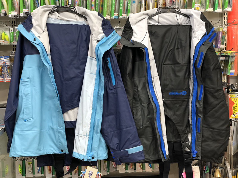 (向かって左)SOSHIN RBB フィッシャーマンレインスーツⅡ