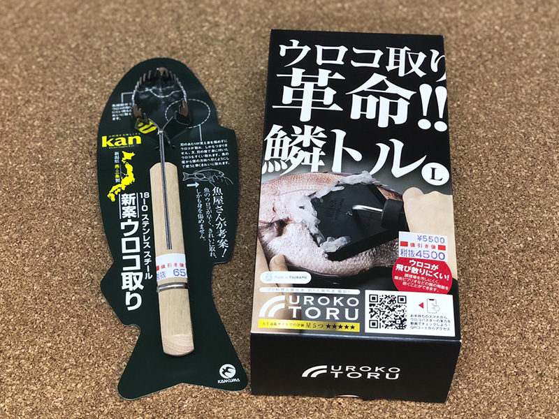 魚の下処理に便利なアイテム♪by 渡正in お知らせon 投稿日: 2020年8月18日 KAN「新案ウロコ取り」/ptygrace「UROKO TORU」 kan 新案ウロコ取り 650円 魚屋さんが考案した新潟県 燕・三条製のウロコ取り prygrace「UROKO TORU」4,500円 新潟県燕製。 角や辺を使い分けることで幅広い魚種に対応。 ウロコが飛びにくいから調理場を汚しにくい! ササラ 魚の内臓取り 竹で出来た魚の内臓取りです。 極細 480円 小 630円 ※価格は全て税抜きです。 共有:FacebookX