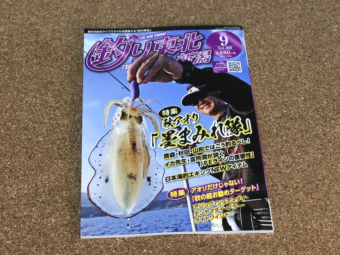 釣り東北9月号発売中by 渡正in お知らせ、ブログon 投稿日: 2020年8月21日 釣り東北9月号発売中。 レジ前の本棚に陳列しております。 ラーヂハナカン回り糸 0.6号、0.8号 それぞれ20m巻き 各960円 ルミカ 神経締めショート これ一本で神経締め&エア抜き 小魚用 アジ・根魚(カサゴ・ハタなど) 960円 TETRA WORKS 初めてのアジングセット スナイプヘッド、バーニー、チョップ、ピピンのセット 900円 価格は全て税抜価格です。 共有:FacebookX