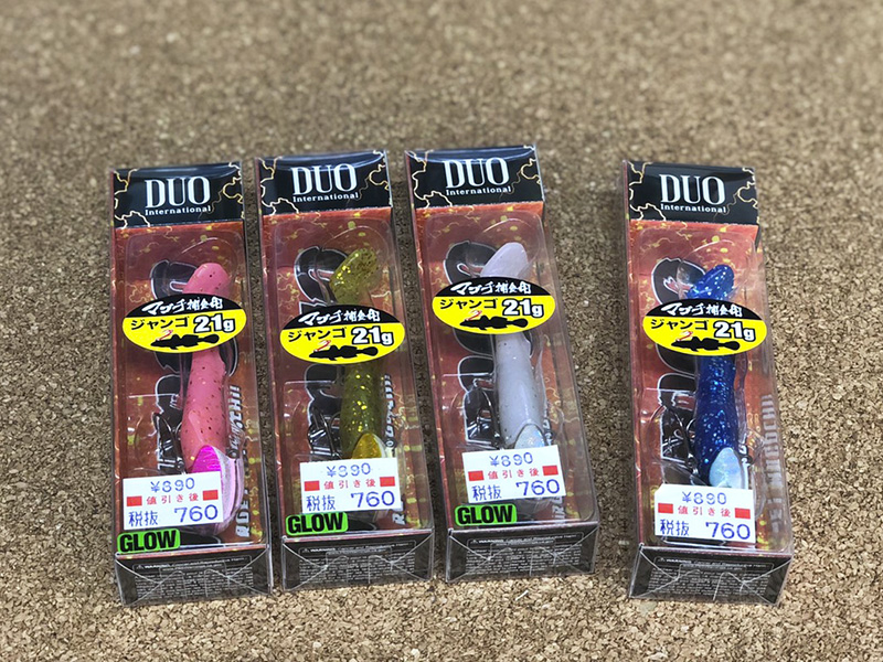 ヒデヨシタングステン追加入荷!by 渡正in お知らせ、ブログon 投稿日: 2020年8月25日 bozles TG 太閤HIDEYOSHI ・スリムなテールで高速スパイラルフォール ・非対称構造によりただ巻きでもウォブリングアクション ・水切りの良い薄型ヘッド 200g 各4,650円(税抜) DUO マゴチ捕食用ビーチウォーカーJumgo(ジャンゴ) ヘッド重量 21g ワーム全長 31inc 一口サイズのマゴチ攻略設定! 各760円(税抜) 共有:FacebookX