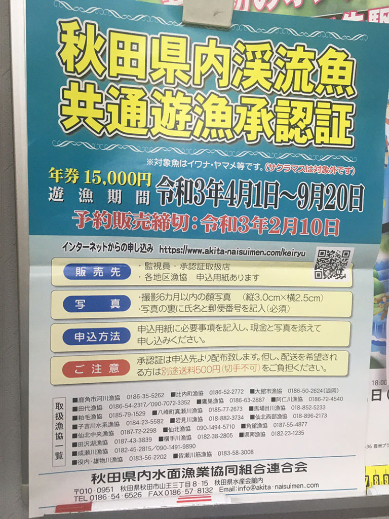 秋田県内渓流魚共通遊漁承認証の販売始めました!