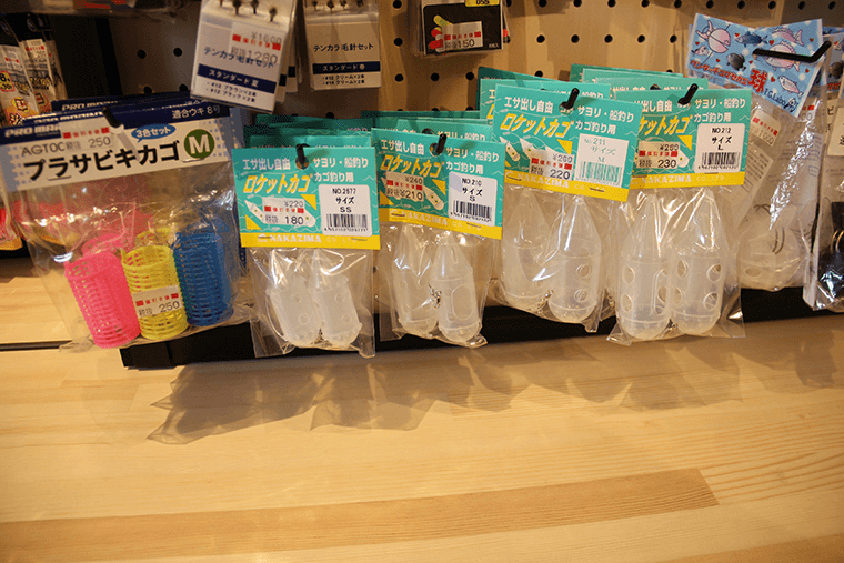 渡正釣具店では、サビキ用の糸やカゴを取り揃えております。