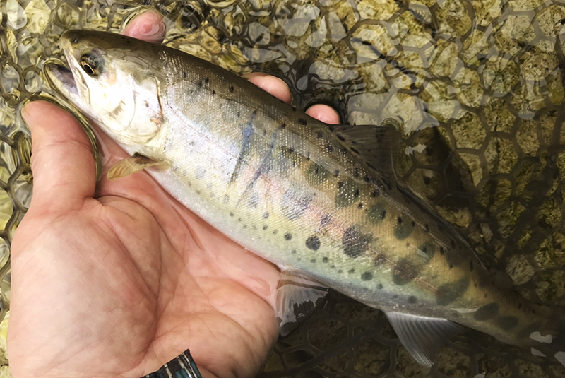 かわいいサイズで戻りヤマメか怪しいですが、ひとまずサクラマスということにしてご報告したいと思います。(笑)